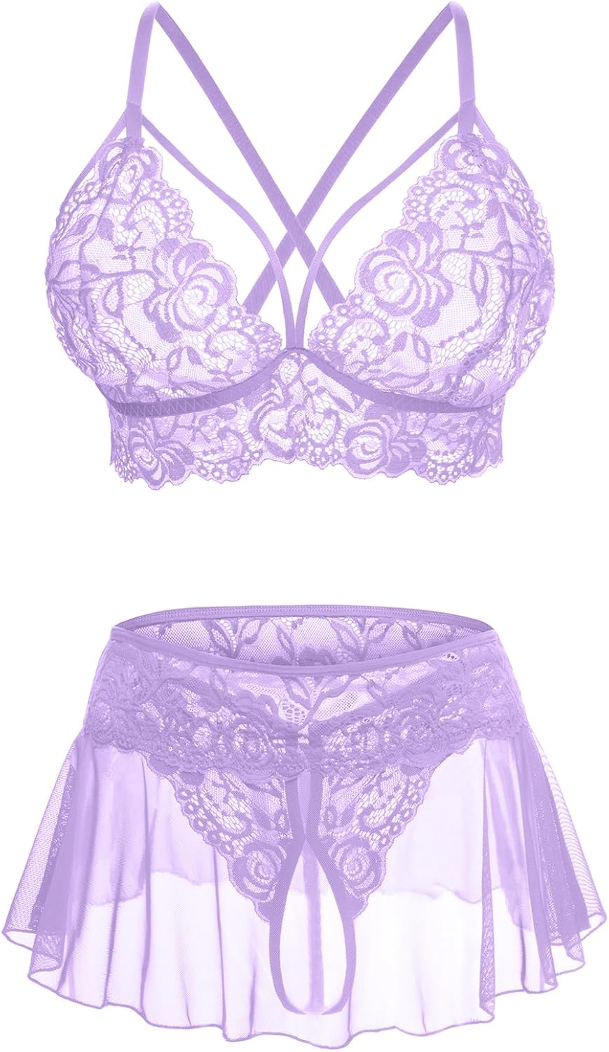 🎁Features: Women’s lingerie set features hollow lace cups, adjustable straps, sexy lace mini skirt and panties to add vitality to your love.